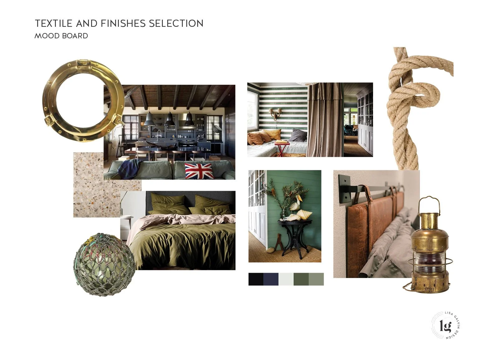 To conjure up an industrial / nautical themed interior design home with suitable textile selection from the inside out – perfect for seaside living.